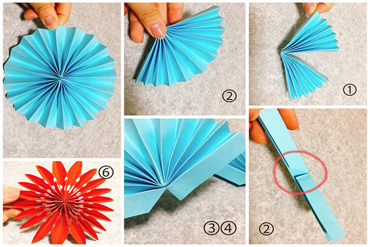 - 紙をジャバラに折り、真ん中で半分に折ります。